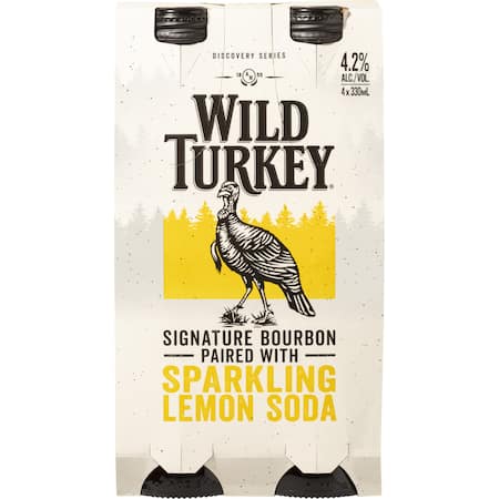 Get Wild Turkey Bourbon With Sparkling Lemon Soda Bottles 330ml x 4 Pack delivered to your doorsteps in minutes | AU