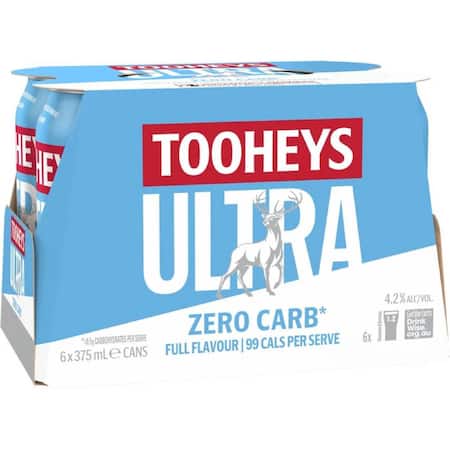 Get Tooheys Ultra Zero Carb Cans 375mL x 6 pack delivered to your doorsteps in minutes | AU
