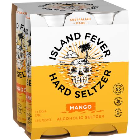 Get Island Fever Hard Seltzer Mango Cans 330mL x 4 pack delivered to your doorsteps in minutes | AU