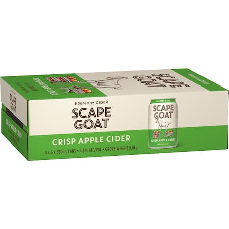 Get Scape Goat Crisp Apple Cider Cans 330mL x 24 pack delivered to your doorsteps in minutes | AU