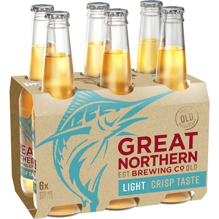 Get Great Northern Brewing Co Light Lager Bottles 330mL x 6 pack delivered to your doorsteps in minutes | AU