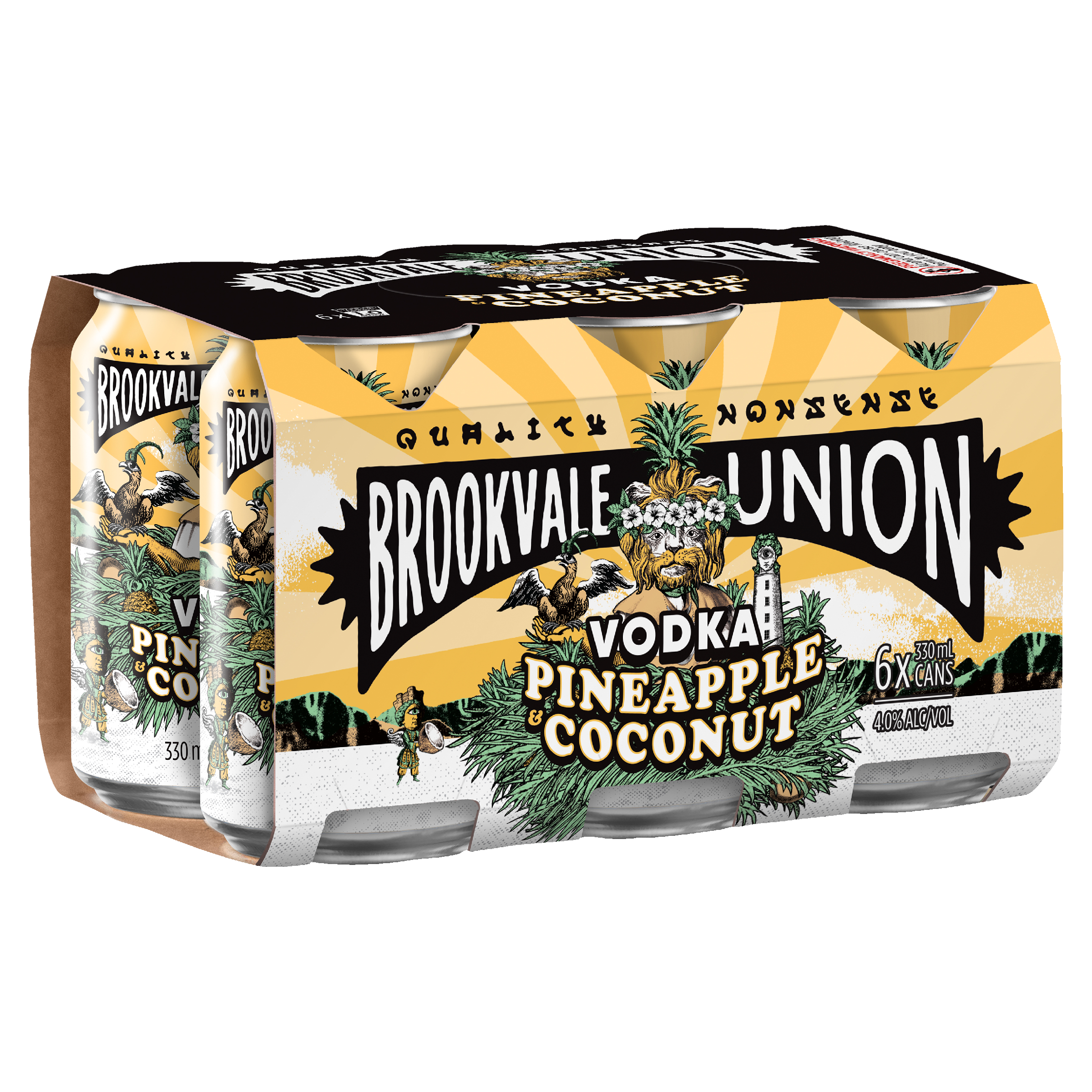 Get Brookvale Un Pineapl Coconut Can6X330ml delivered to your doorsteps in minutes | AU