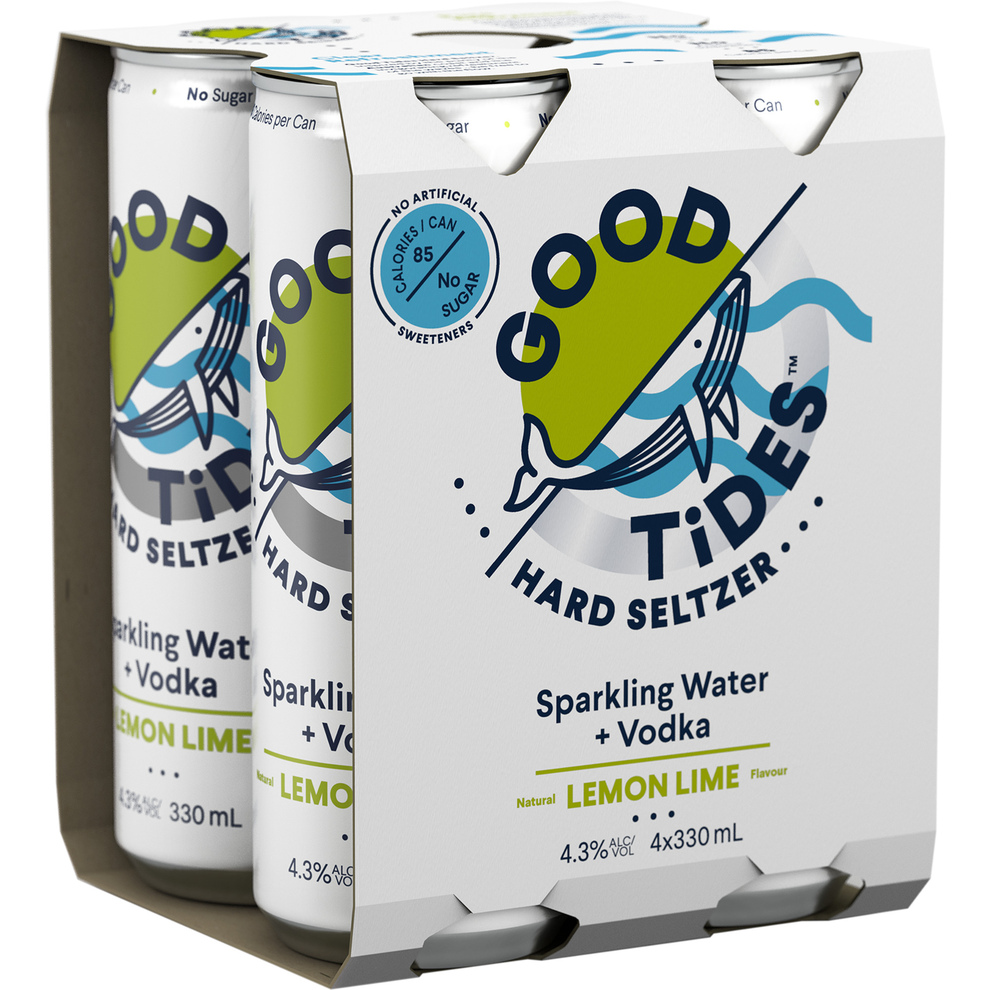 Bring on the good times with Good Tides Hard Seltzer. Refreshingly lemony limey sparkling water and vodka. With no sugar, and only 85 calories per can, what more do you need?