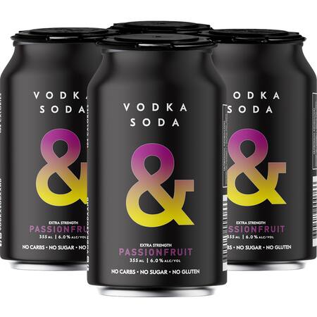 Get Vodka Soda & Extra Strength Passionfruit Can 355ml x 4 Pack delivered to your doorsteps in minutes | AU