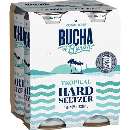 Get The Dirty Bucha of Byron Tropical Hard Seltzer Cans 330mlx 4 Pack delivered to your doorsteps in minutes | AU