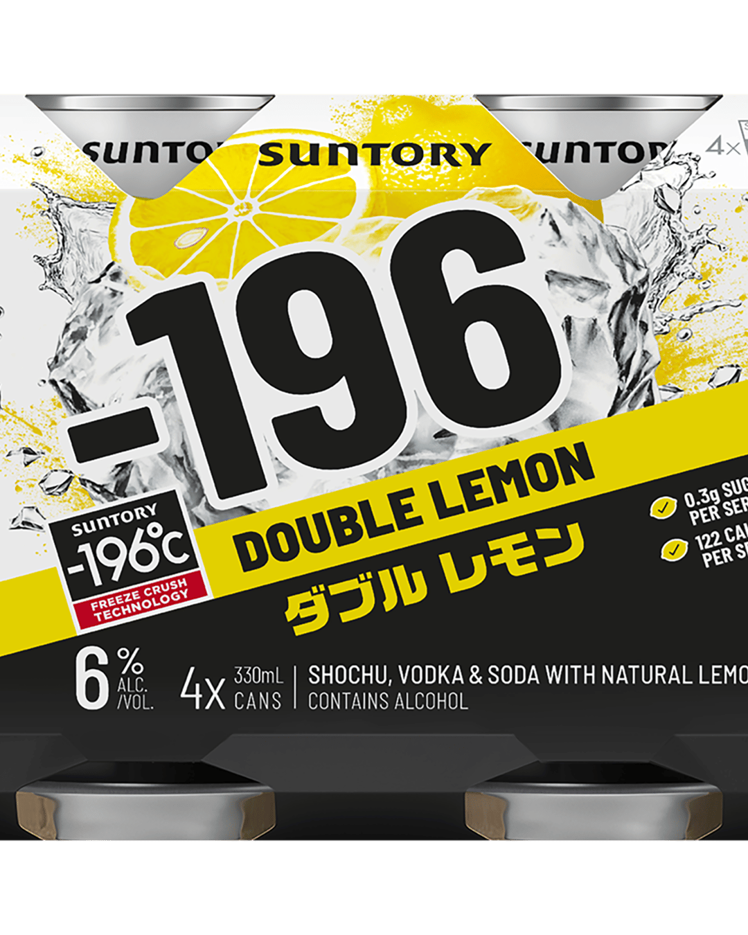 -196 Double Lemon is made from shochu, vodka, soda and lemon, using Suntory’s Proprietary Freeze Crush Infusion Technolog that freezes and crushes real fruit to capture every bit of all-natural lemon flavor. With only 0.3 grams of sugar and 122 calories per can, '-196 it the perfect drink option to kick start your night out.