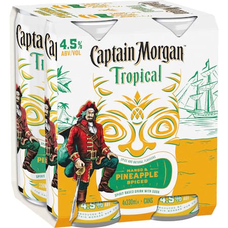 Get Captain Morgan Tropical Mango & Spiced Apple Cans 330ml x 4 Pack delivered to your doorsteps in minutes | AU