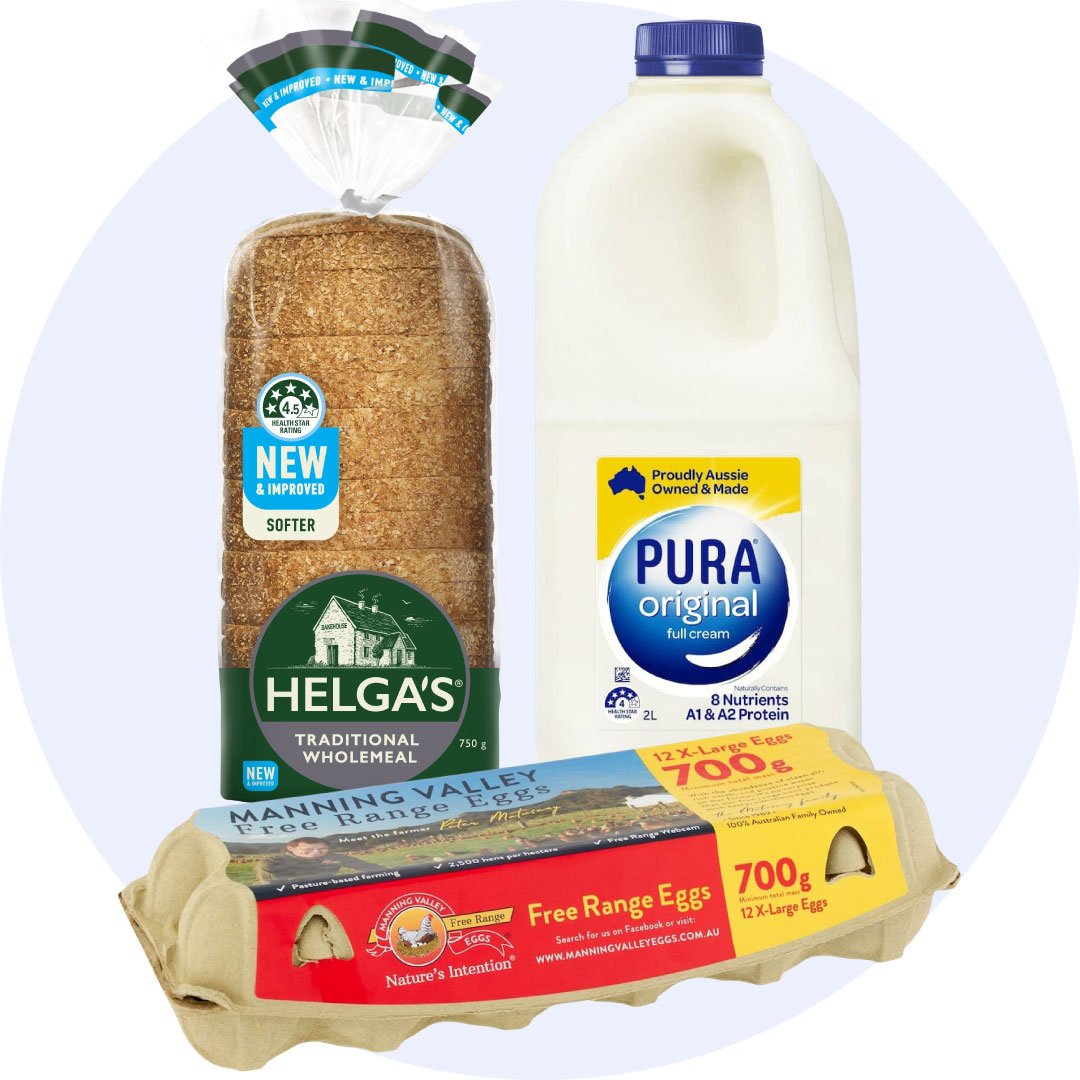 The kitchen trifecta, neatly bundled up into one convenient package. You'll never be short on milk, bread and eggs ever again.
